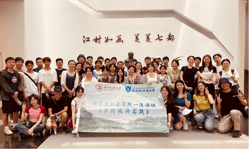 本次研学还深入探访了苏州城市规划展览馆,回顾了苏州城乡发展的历程,也涉及对苏州城市更新的讨论和学习,从城乡融合发展的全局视角来反思当前的乡村振兴工作。随后,乡村振兴联合工作营顺利移师贵州省贵阳市。西交利物浦大学的同学们在抵达贵阳后先自行调研了青岩古镇与夜郎谷。两地作为贵阳市民族艺术、特色建筑、地方产业、文化旅游的典型代表,同学们在沉浸感受地方文化的同时,也在思考贵州基于民族特色推动农文旅产业融合发展的可能性。