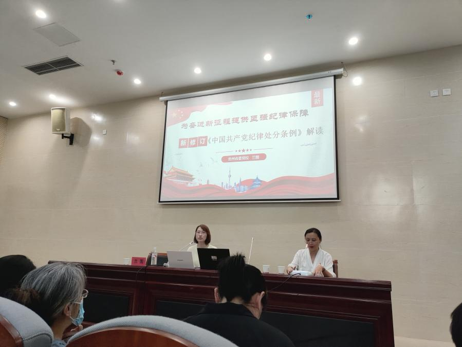 为扎实推进党纪学习教育走深走实,进一步提升党员遵纪守法、廉洁自律意识、纪律意识和规矩意识,7月10日下午,贵州省委党校兰图教授在williamhill英国威廉希尔南校区行政楼第一报告厅开展题为《为奋进新征程提供坚强纪律保障》的专题辅导报告。报告会由建筑工程公司党委书记何璘主持,williamhill英国威廉希尔、传媒公司、材料公司全体党员师生参加学习。