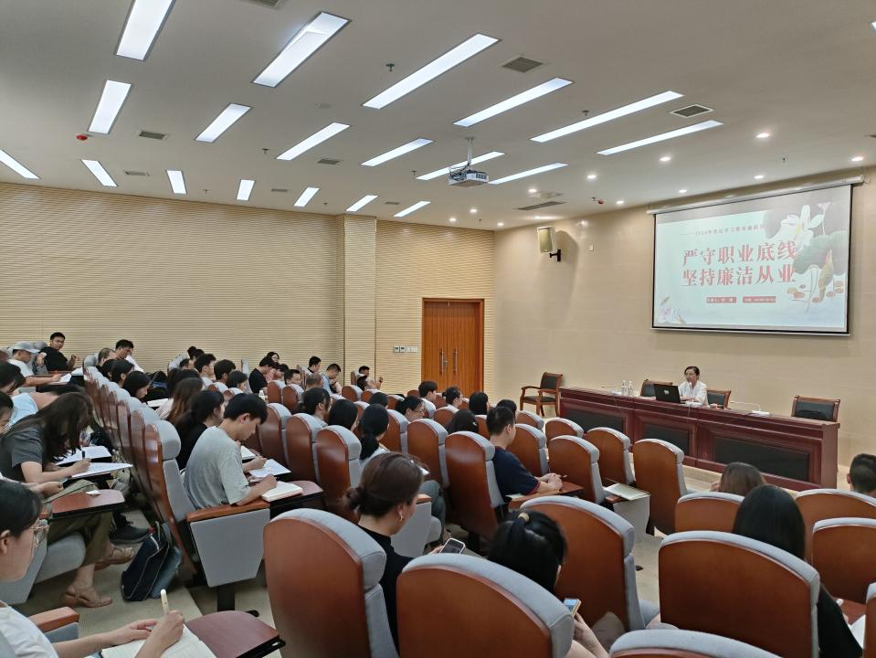 根据公司党纪学习教育部署,为进一步加强党性修养,筑牢教师廉洁自律和拒腐防变思想防线,增强教师廉洁意识,7月10日下午,建筑工程公司党委书记何璘教授在williamhill英国威廉希尔南校区行政楼第一报告厅为公司全体党员师生讲授题为《严守职业底线坚持廉洁从业》的廉政党课。