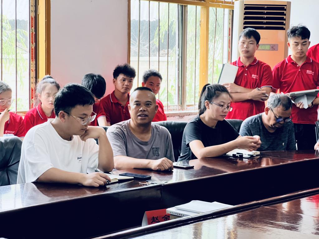 青岩镇党建办负责人肖岑汀、摆早村支书赵金文、青岩镇摆早村副主任赵克琼、摆早村两委委员及实践团全体师生参加汇报会。